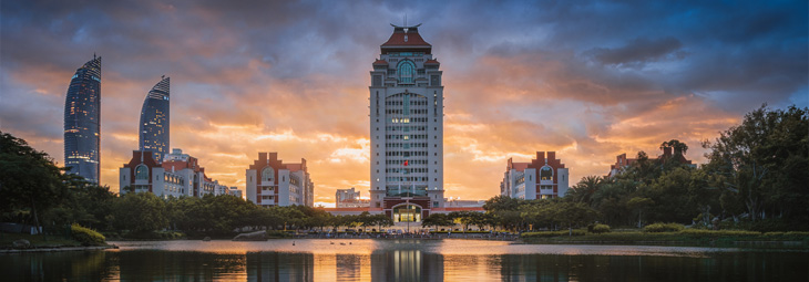 厦门大学(见图1),坐落于福建省厦门市东南隅,背倚五老峰,面朝万顷碧波,素有“中国最美大学”之誉。校园由著名侨领陈嘉庚先生于1921年创办,其标志性的“嘉庚建筑”以闽南燕尾脊与西洋屋身巧妙结合,形成了中西合璧的独特风格。核心楼群“群贤楼群”即为此风格典范,承载着“自强不息,止于至善”的校训精神。这里曾汇聚鲁迅、林语堂等名家学者,奠定了深厚的学术根基。如今,这座依山傍海的学府,既是严谨的学术殿堂,也是厦门重要的文化地标。